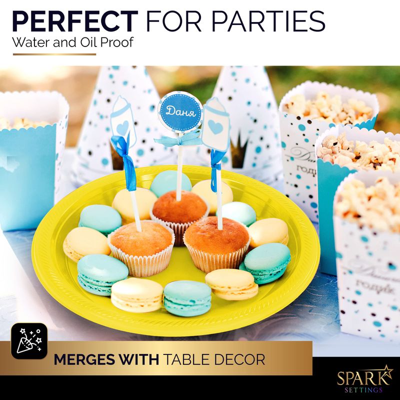 ?Diseño: el bonito color brillante sorprenderá a tus participantes del evento y será muy agradable en tu mesa o en tu centro de mesa, sin embargo, los uses funcionará maravillosamente. Bonito diseño de platos desechables hace que este bonito juego de vajilla de plástico.