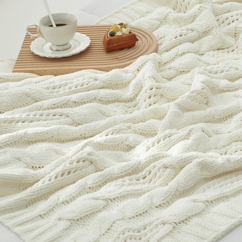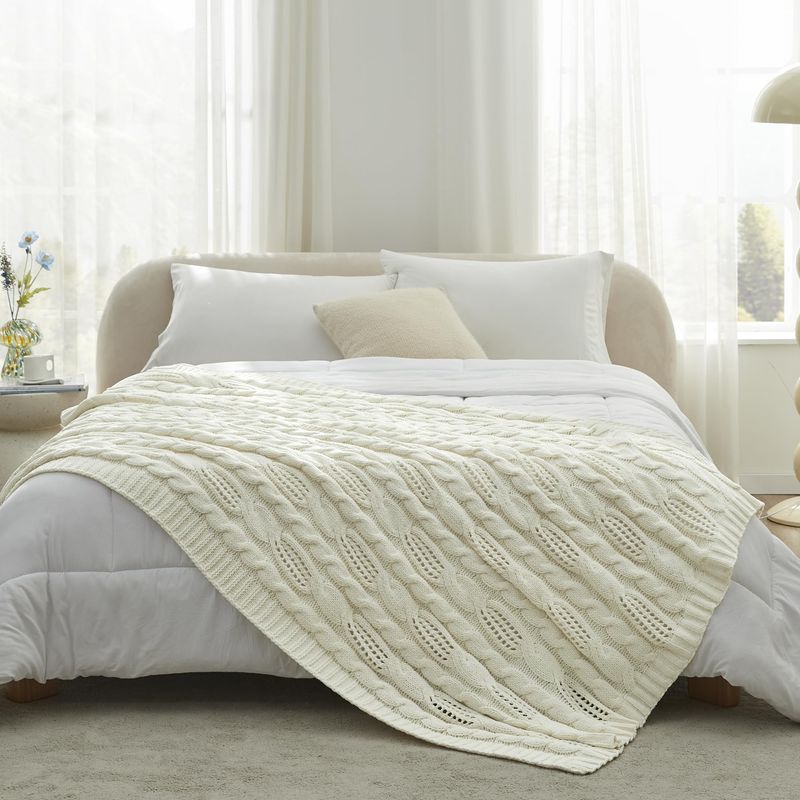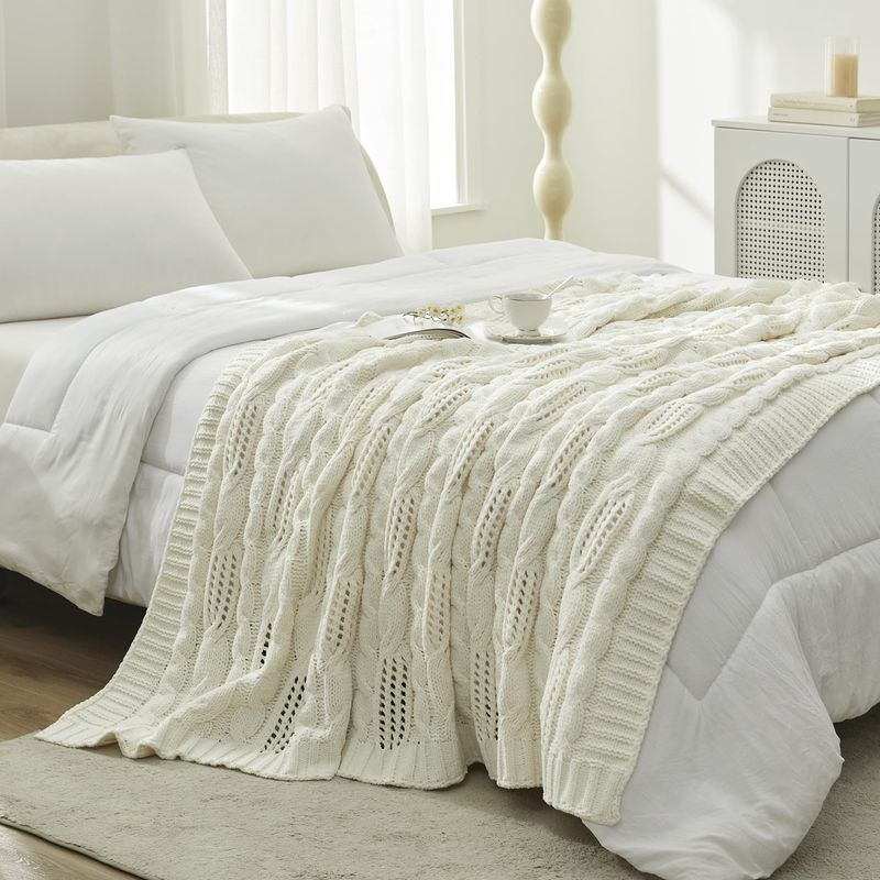 HOGARBLANQUERIACUBRECAMAAmélie Home Manta de punto trenzado, suave, acogedora, ligera, de punto grueso, manta de granja para