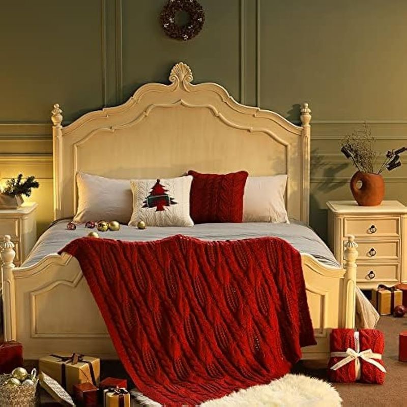 HOGARBLANQUERIACUBRECAMAAmélie Home Manta de punto trenzado, suave, acogedora, ligera, de punto grueso, manta de granja para