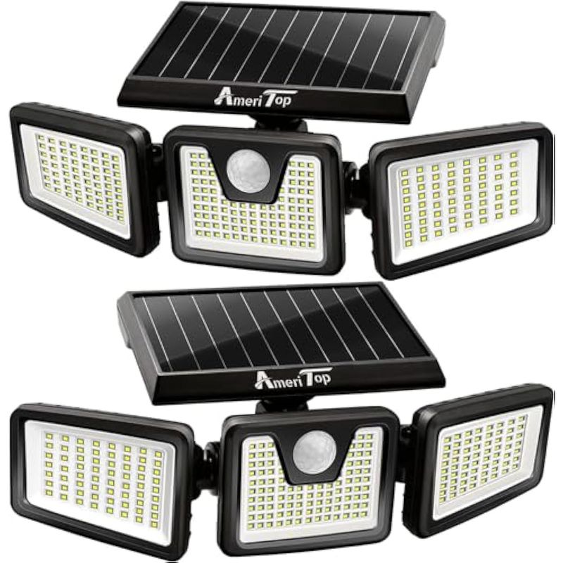 AmeriTop Luces solares para exteriores, de 800 lúmenes, inalámbricas, con sensor de movimiento solar