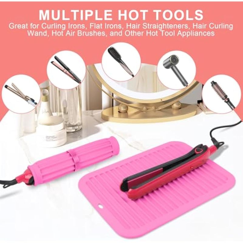 Alfombrilla resistente al calor: nuestra alfombrilla de silicona resistente al calor para herramientas para el cabello puede soportar temperaturas de hasta 482 ° F 482.0 °F que pueden proteger la encimera y los muebles del daño por calor de la plancha plana, rizador, alisador de pelo, cepillo de aire caliente, secador de pelo y otras herramientas de peinado de cabello caliente; ideal para el hogar, tocador, gimnasio, viajes y peluquería