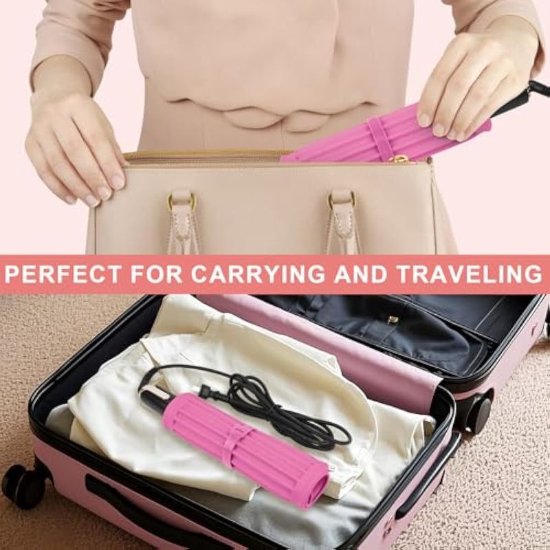 Diseño útil: esta alfombrilla de rizador tiene un diseño antideslizante de textura elevada y viene con velcro, envolviendo de forma segura tu rizador de cabello y alisadores, el diseño doble hace que sea más fácil para ti almacenar y transportar