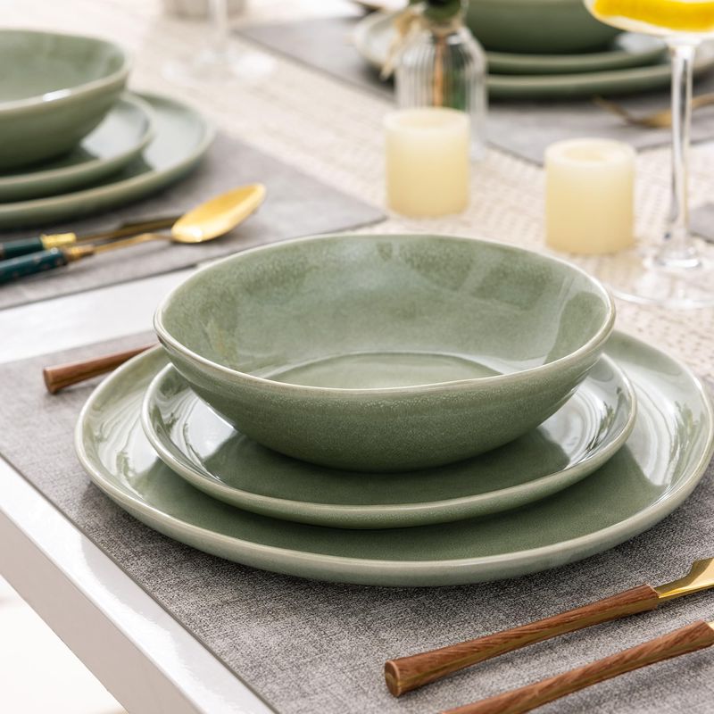 HOGARBAZARUTENSILIOS DE COCINAAmorArc Juego de vajilla de cerámica, juego de platos y cuencos de esmalte reactivo hecho a mano,