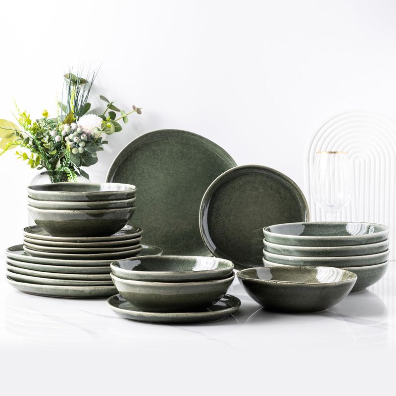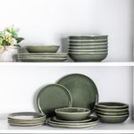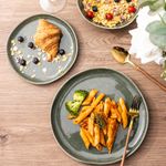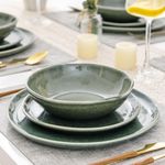 AmorArc Juego de vajilla de cerámica, juego de platos y cuencos de esmalte reactivo hecho a mano,
