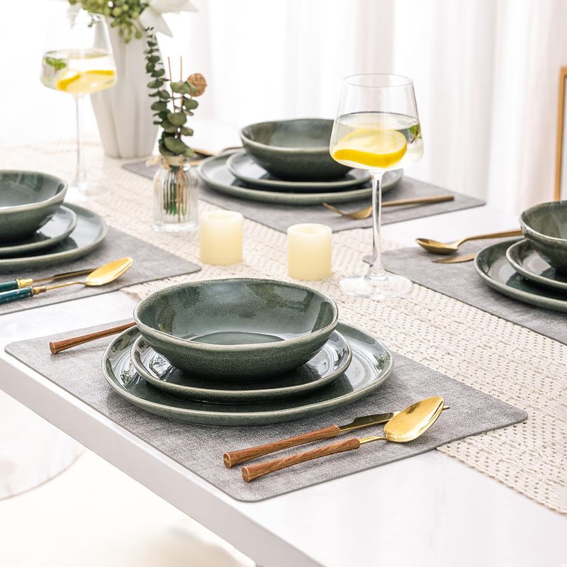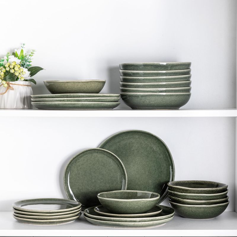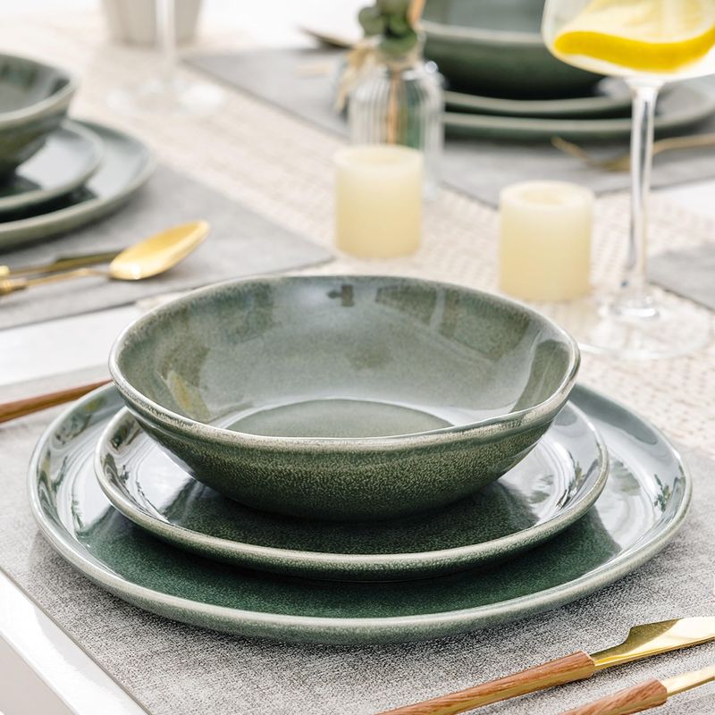 HOGARBAZARUTENSILIOS DE COCINAAmorArc Juego de vajilla de cerámica, juego de platos y cuencos de esmalte reactivo hecho a mano,