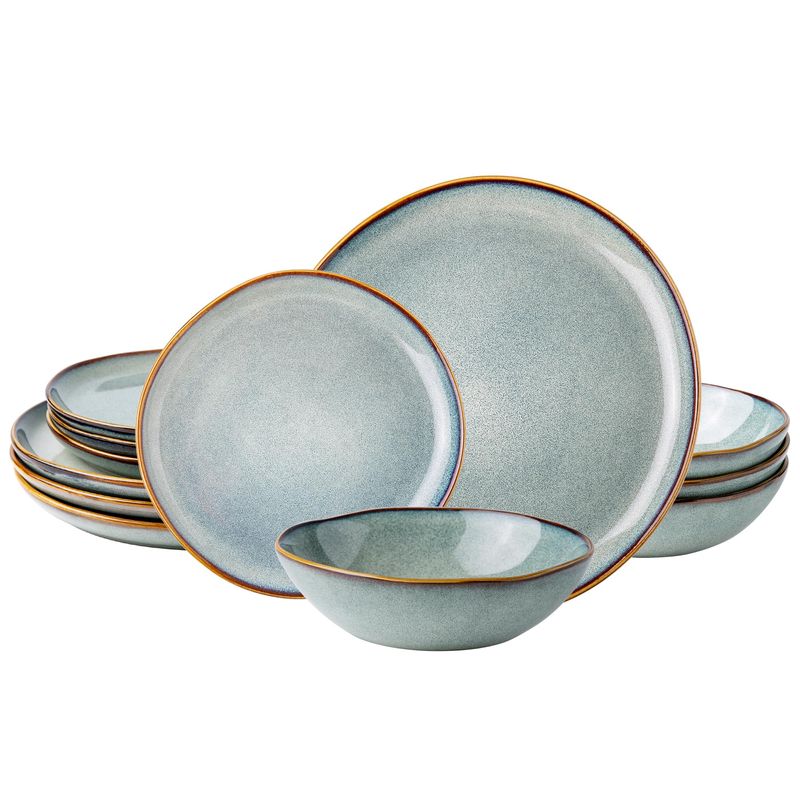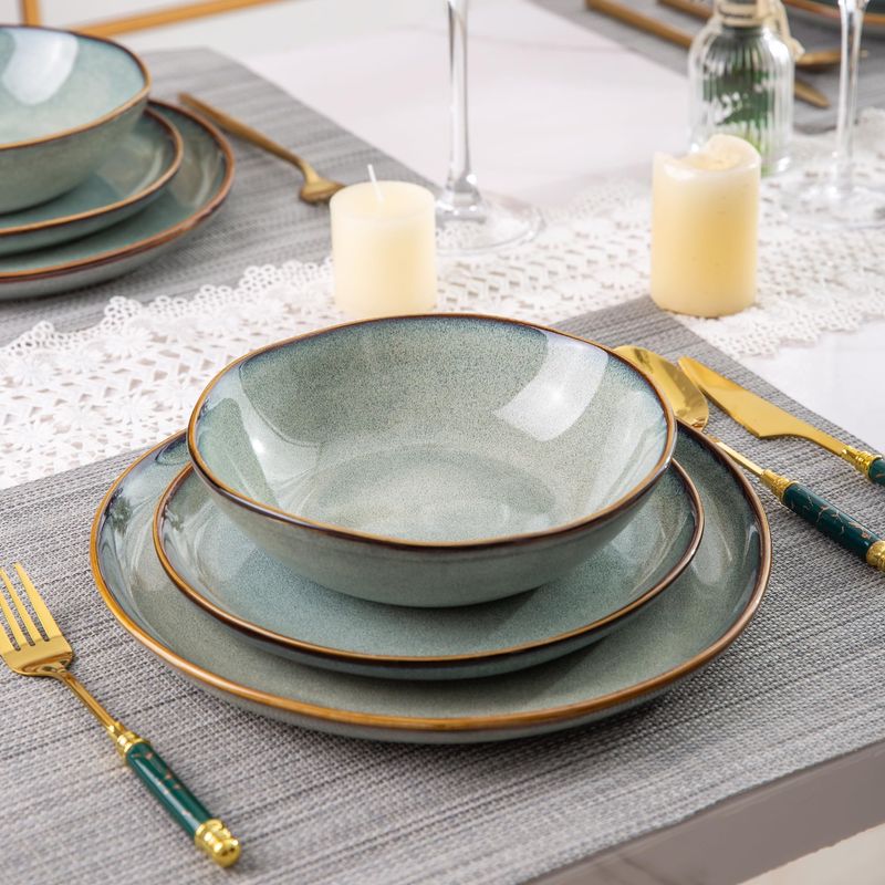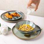 HOGARBAZARUTENSILIOS DE COCINAAmorArc Juego de vajilla de cerámica, juego de platos y cuencos de esmalte reactivo hecho a mano,