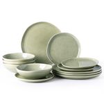 AmorArc Juego de vajilla de cerámica, juego de platos y cuencos de esmalte reactivo hecho a mano,