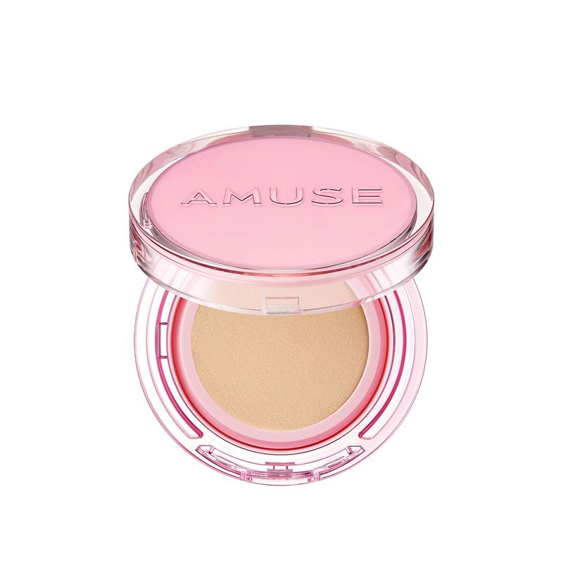 Amuse Base de cojín vegano Seul Dew Power, rocío, brillante, de larga duración, doble cobertura,