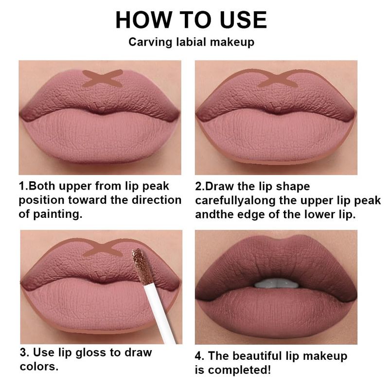 AMY'S DIARY Juego de 2 delineadores de labios y lápiz labial mate, color marrón claro, brillo de