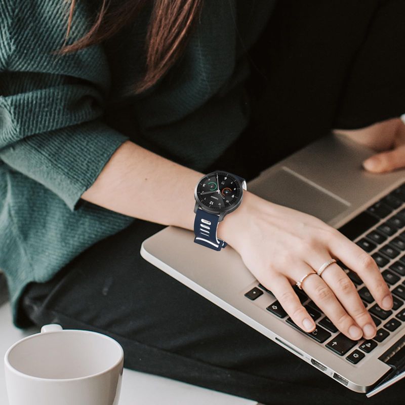 - Diseño de doble color: la correa deportiva de moda hizo que tu reloj inteligente activo Galaxy Watch destaque.