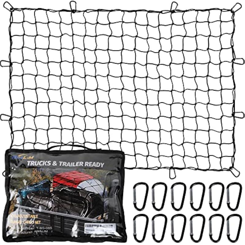 ANALIM RED DE CARGA PARA CAMA DE CAMIONETA, 4 X 6 PIES, SE ESTIRA HASTA 8 X 12 PIES, RED DE CARGA ELáSTICA RESISTENTE CON 12 CLIPS DE MOSQUETóN DE METAL, RED DE MALLA DE AMARRE PARA EQUIPAJE DE REMOLQUE