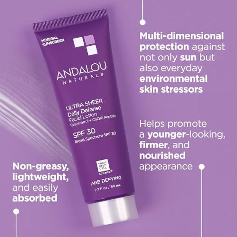 BELLEZA Y SALUDBELLEZA Y CUIDADO CORPORALCUIDADO DE LA PIELAndalou Naturals Protector solar facial antienvejecimiento, protector solar mineral de óxido de zinc