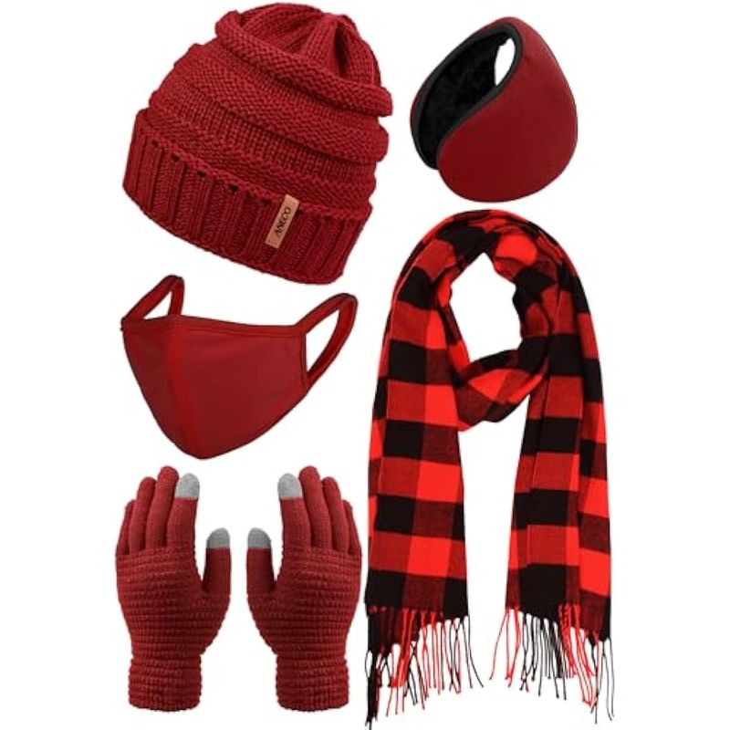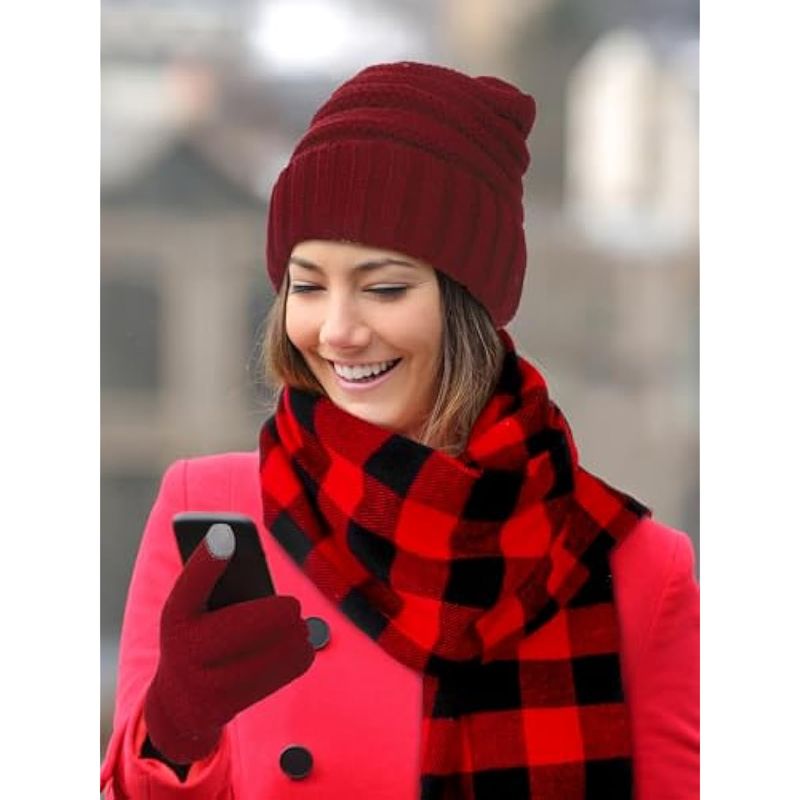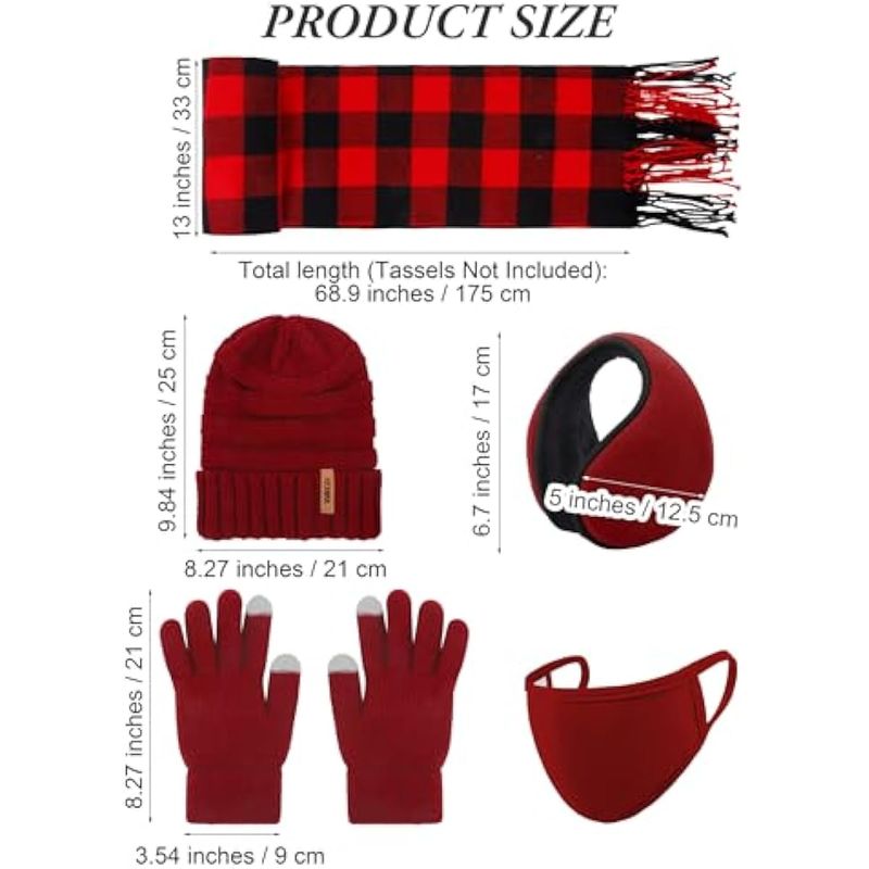 ANECO CONJUNTO CáLIDO DE INVIERNO CON BUFANDA A CUADROS DE BúFALO, GORRO DE PUNTO, GUANTES CON LAZO PARA LAS OREJAS, CUBIERTA CáLIDA PARA HOMBRES Y MUJERES
