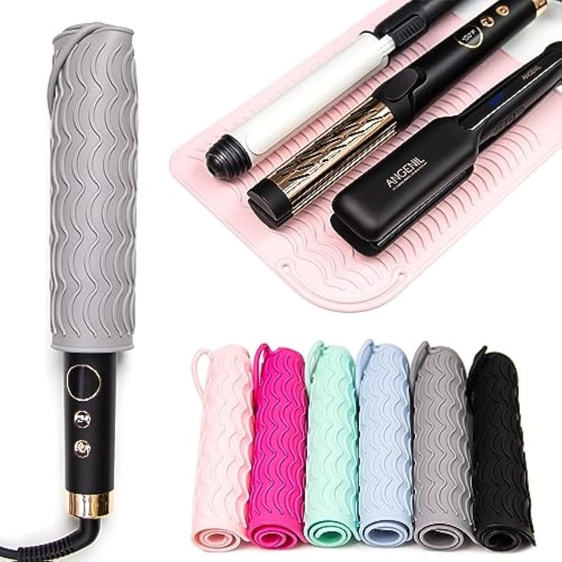 ANGENIL ALFOMBRILLA DE SILICONA RESISTENTE AL CALOR PROFESIONAL PARA RIZADOR, ALISADOR DE PELO DE TITANIO Y TURMALINA, PLANCHA PLANA ALISADORA, RIZADOR DE PELO, FUNDA DE VIAJE DE TAMAñO GRANDE DE