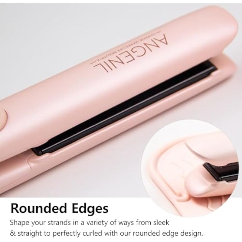 ANGENIL PLANCHA DE TITANIO PARA ALISAR Y RIZAR EL CABELLO 2 EN 1, ALISADOR DE PELO DE SILICONA ANTIQUEMADURAS DE DOBLE VOLTAJE, PLANCHA PLANA ROSA IóNICA CON ALFOMBRILLA DE SILICONA RESISTENTE AL