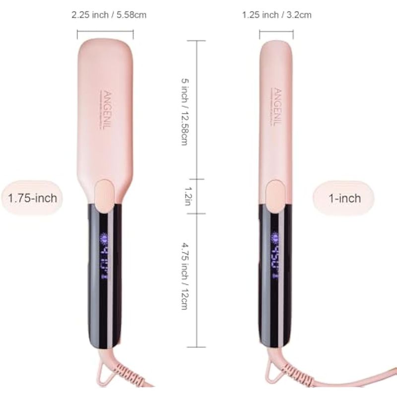 ANGENIL Plancha plana Pro Titanium de 1.75 pulgadas de ancho, alisador y rizador de doble voltaje de