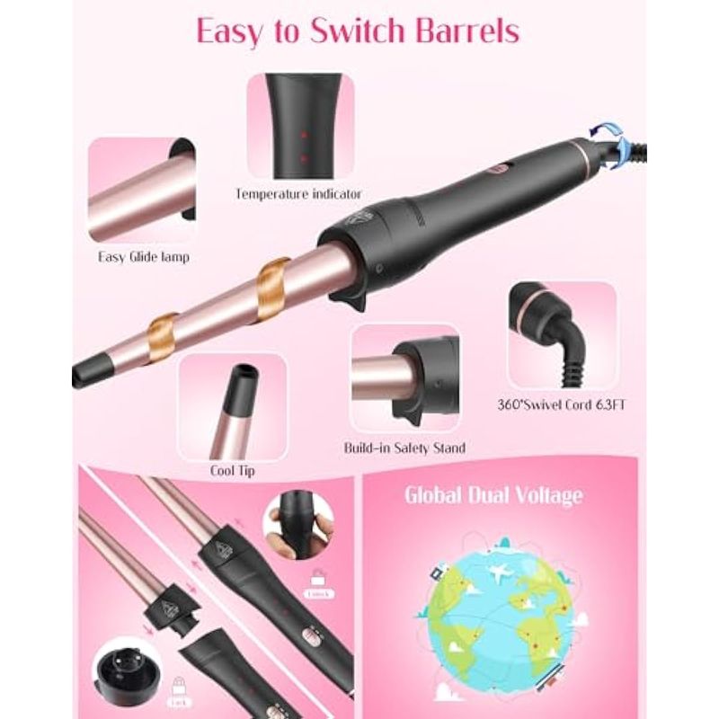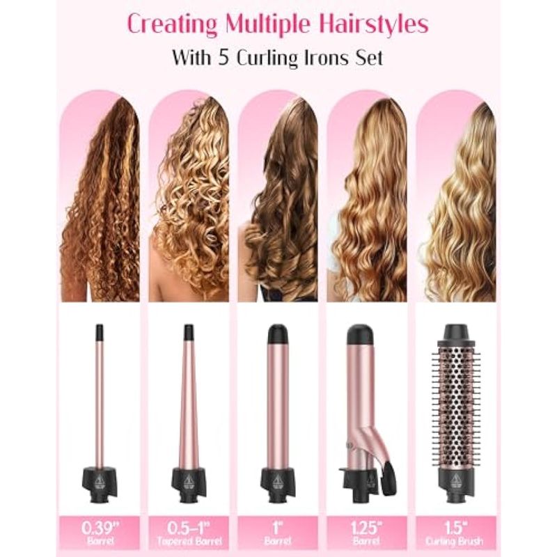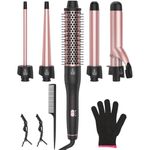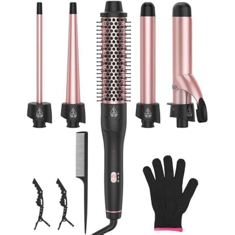 ANIEKIN Juego de rizador 5 en 1: incluye un cepillo rizador y 4 varitas de cerámica intercambiables