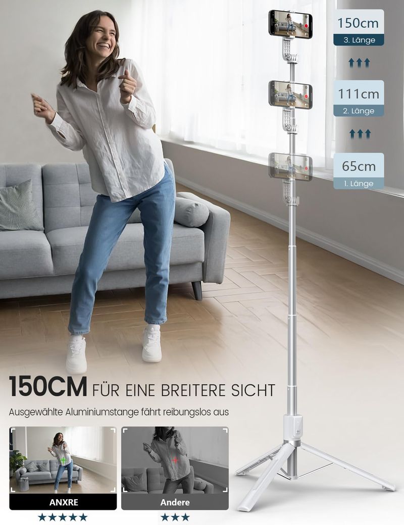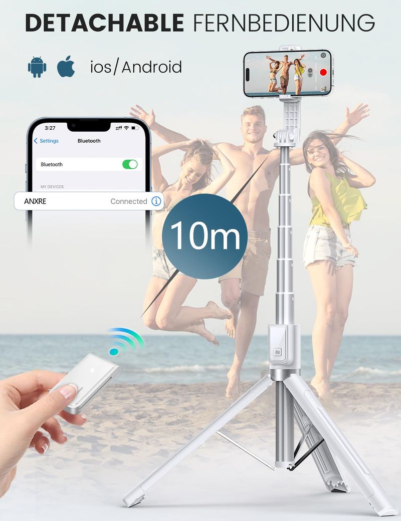 ANXRE Trípode para selfie stick de 50 pulgadas con control remoto, trípode portátil 5 en 1 para
