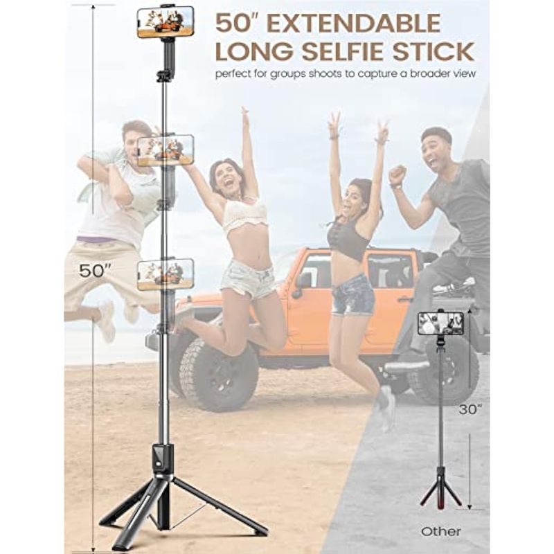ANXRE TRíPODE PARA SELFIE STICK DE 50 PULGADAS CON CONTROL REMOTO, TRíPODE PORTáTIL 5 EN 1 PARA TELéFONO SELFIE, TRíPODE INALáMBRICO PARA TELéFONO CELULAR COMPATIBLE CON IPHONE 14/13 PRO MAX GOPRO ANDROID DJI (NEGRO)