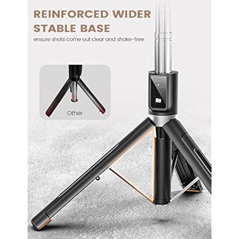 ?Estabilidad reforzada y control remoto desmontable sin manos?: el trípode para selfie stick ANXRE con control remoto tiene un diseño avanzado en comparación con la mayoría de palitos selfies, patas más anchas con goma antideslizante y 3 soportes de acero inoxidable integrados para garantizar que cada toma salga clara y sin sacudidas. Lo que hace increíble es el control remoto inalámbrico del trípode selfie stick con control remoto utilizando el último chip V5.2, que es fácil de emparejar, rango de trabajo de hasta 32.8 ft 30 pies y soporta más de 20,000 selfies.