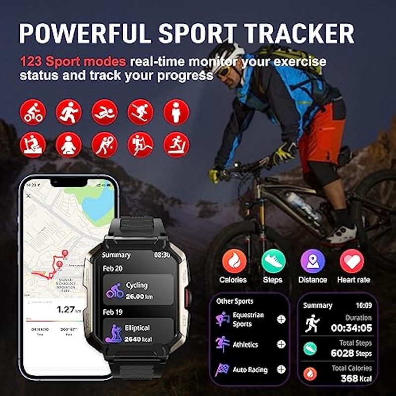 TELEFONIASMARTWATCHanyloop Relojes inteligentes militares para hombres, pantalla HD de 1.85 pulgadas, 400 mAh,
