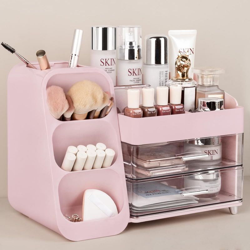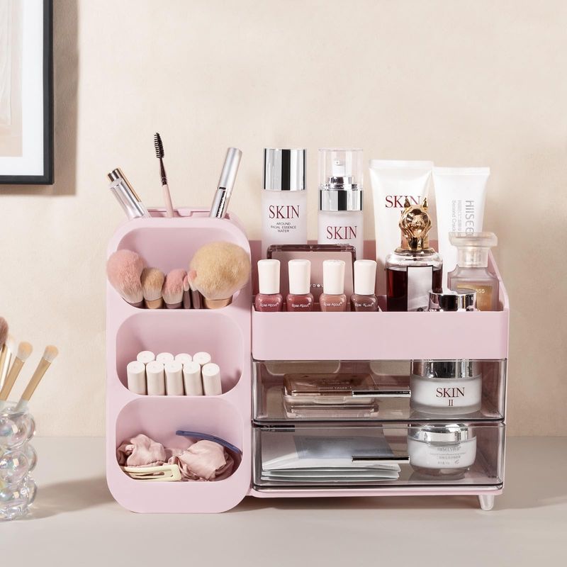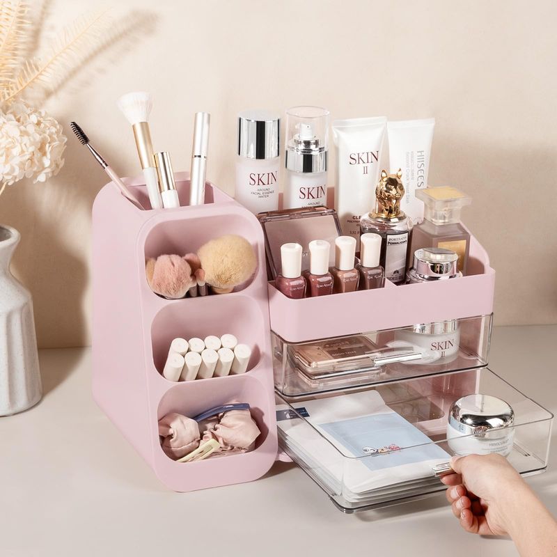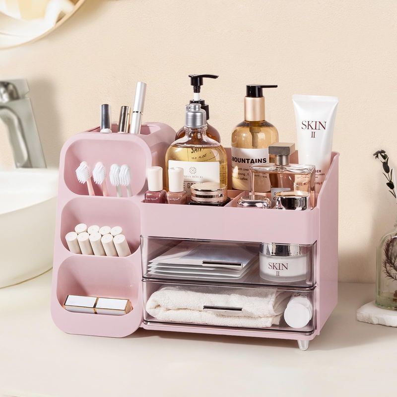 Anyoifax Organizador de maquillaje con cajones, organizador de tocador para encimera con soporte