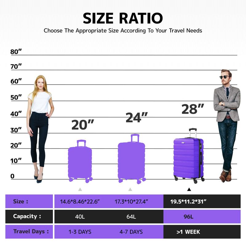 ANYZIP EQUIPAJE PC ABS HARDSIDE MALETA LIGERA CON 4 RUEDAS UNIVERSALES TSA LOCK 20 24 28 PULGADAS, PúRPURA VIOLETA