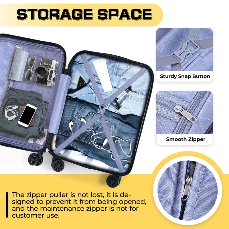 Espacio de almacenamiento más grande: hemos adoptado un diseño de estructura más científica para maximizar el espacio de uso en la caja, y las particiones internas razonables hacen que tu equipaje esté más ordenado y pueda acomodar más.