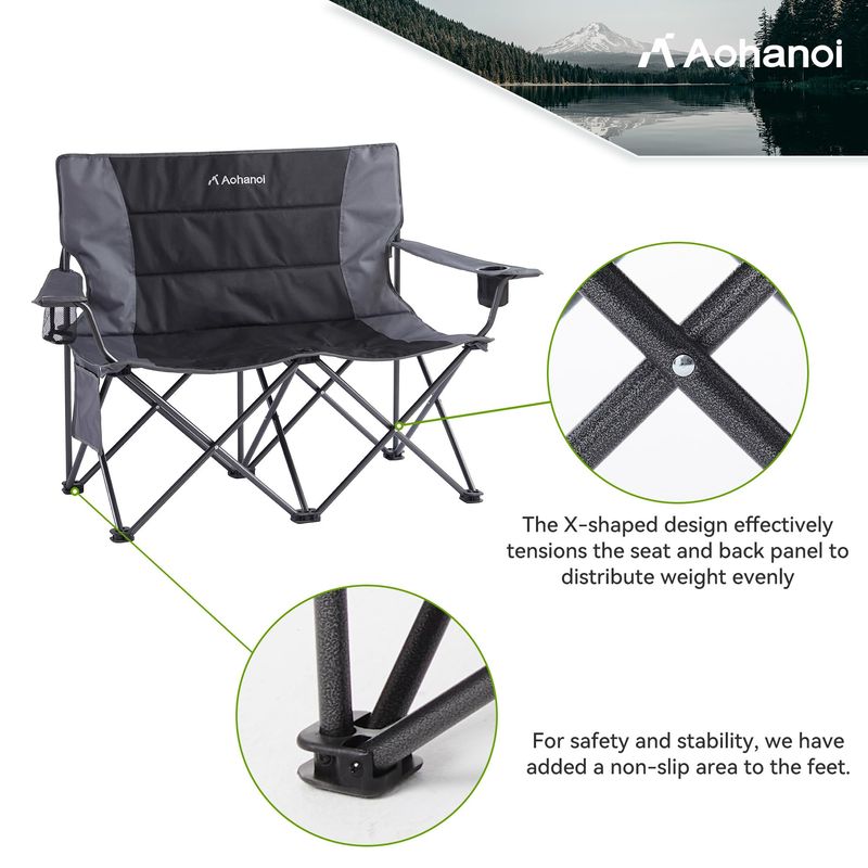 AOHANOI SILLAS DE CAMPAMENTO, SILLAS DE CAMPAMENTO PARA PERSONAS PESADAS, SOFá BIPLAZA AL AIRE LIBRE, SILLAS DE CAMPAMENTO DE DOBLE TAMAñO CON ASIENTOS EXTRA ANCHOS PARA ADULTOS, SILLAS DE CéSPED PLEGABLES QUE SOPORTAN HASTA 500 LIBRAS X 2, COLOR AZUL MARINO