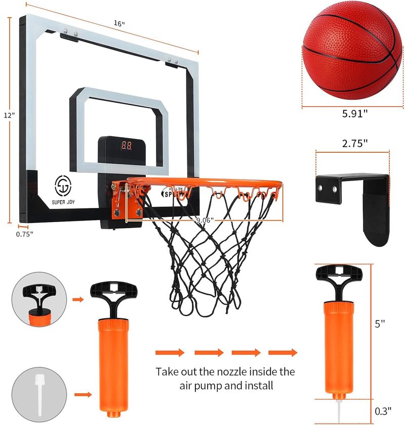 AOKESI Indoor Mini Basketball Hoop Set for Kids - 17" x 12.5" Door Basketball Hoops for