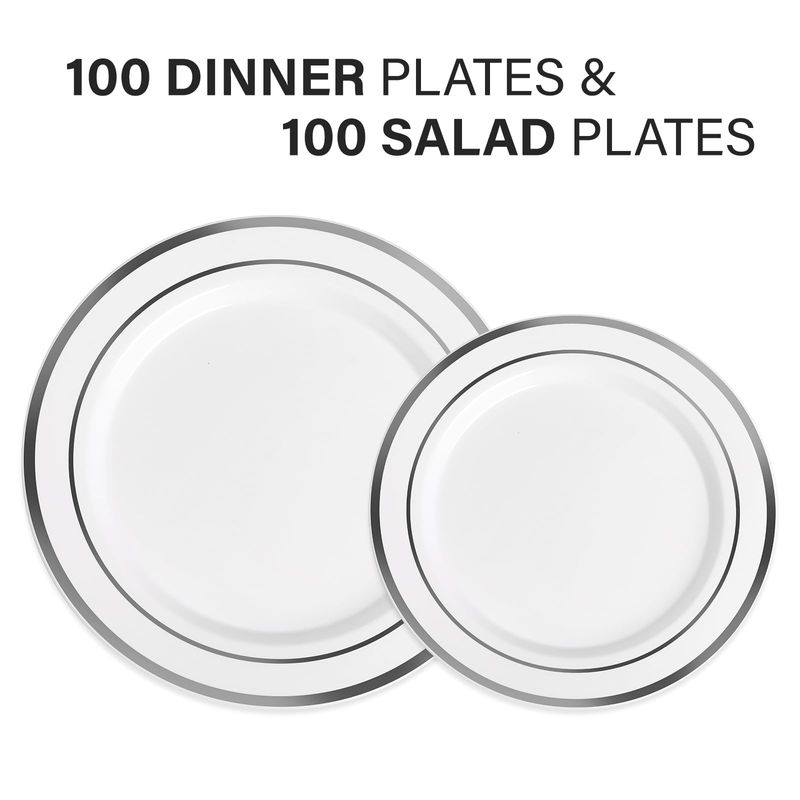 AOZITA 100 platos de plástico dorados desechables para fiestas, platos de plástico resistentes de