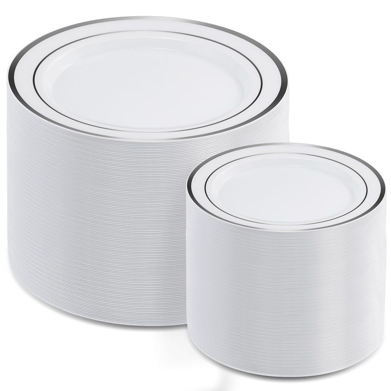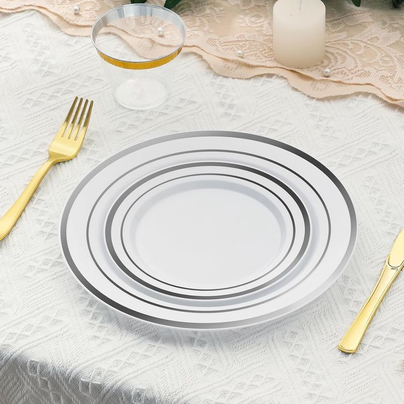 HOGARBAZARUTENSILIOS DE COCINAAOZITA 100 platos de plástico dorados desechables para fiestas, platos de plástico resistentes de