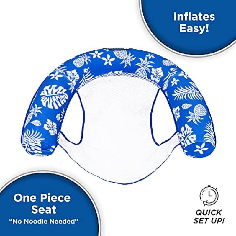 AQUA DELUXE - SILLA TUBO DE PISCINA, FLOTADOR INFLABLE TUBO DE PISCINA, TELA DE LUJO, ALTA RESISTENCIA, AZUL OSCURO CON PIñA.