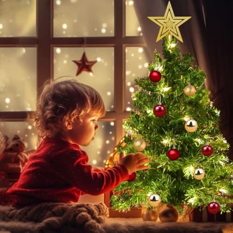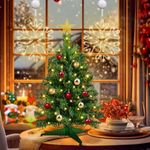 HOGARBAZARDECORACIONÁrbol de Navidad de mesa de 22 pulgadas con temporizador, 30 luces LED cálidas, cinta roja con