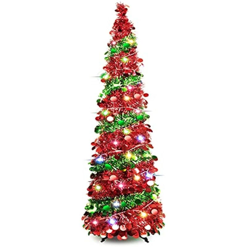 Árbol de Navidad desplegable de lentejuelas: árbol de Navidad hecho de material de oropel ecológico, con lentejuelas de papel de aluminio con purpurina. Cuando agregues luces, hará que se vea más bonito en la oscuridad. La combinación del oropel brillante y las luces es muy bonita las luces están incluidas. El árbol contemporáneo económico y moderno agregó la cantidad justa de alegría navideña, ¡exactamente lo que querías para la temporada!