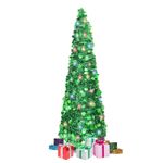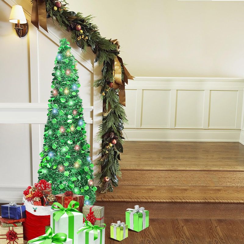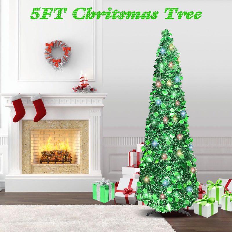 Árbol de Navidad desplegable de lentejuelas: árbol de Navidad hecho de material de oropel ecológico, con lentejuelas de papel de aluminio con purpurina. Cuando agregues luces, hará que se vea más bonito en la oscuridad. La combinación del oropel brillante y las luces es muy bonita las luces están incluidas. El árbol contemporáneo económico y moderno agregó la cantidad justa de alegría navideña, ¡exactamente lo que querías para la temporada!