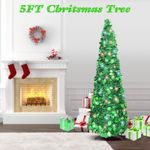ÁRBOLES DE NAVIDAD DE 5 PIES CON 90 LUCES LED, áRBOL DE NAVIDAD PLEGABLE DE LENTEJUELAS ARTIFICIALES, áRBOLES DE NAVIDAD ALTOS Y DELGADOS CON SOPORTE, áRBOL DE NAVIDAD PARA APARTAMENTO, SóTANO, CHIMENEA, OFICINA EN CASA