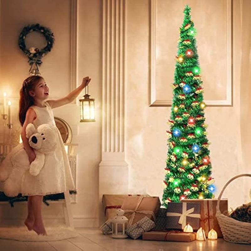 ?????????Perfecto para espacios pequeños?El árbol de Navidad es estrecho, por lo que cabe en el rincón y la grieta, llena perfectamente tu esquina vacía. Como chimenea del hogar, porche delantero, patio trasero, sala de estar y recepción de oficina, tienda, bar, etc. Decoración perfecta de Navidad que te pone en el espíritu navideño