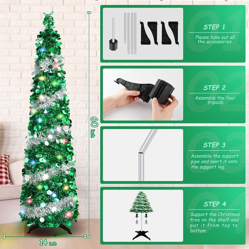 ?????????Fácil de montar y almacenar?: solo tienes que poner las patas en la base, conectar los postes y luego poner la parte superior del árbol en la torre y bajar el árbol. ¡Entonces déjalo ir y mira cómo se despliega tu árbol! Plegable para la tienda: todo viene en una caja plana, puede guardarlo de nuevo en la caja una vez que termine la temporada o guardarlo para el próximo año.