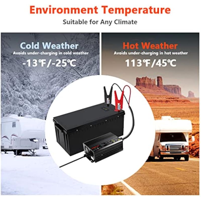 ?Parámetros de carga?Voltaje de salida: 14.6 V | Corriente de carga: 50 A. Diseñado para baterías Lifepo4 de 12 V 14.8 V. Con función de arranque de 0 voltios