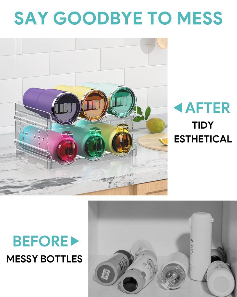 HOGARBAZARUTENSILIOS DE COCINAAreforic Organizador de botellas de agua, paquete de 4 organizadores apilables para gabinetes,