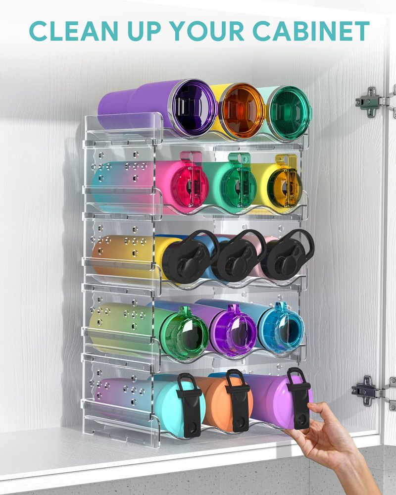 HOGARBAZARUTENSILIOS DE COCINAAreforic Organizador de botellas de agua, paquete de 4 organizadores apilables para gabinetes,