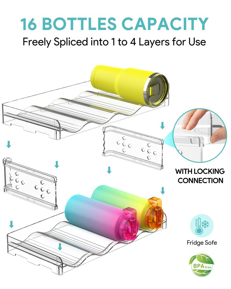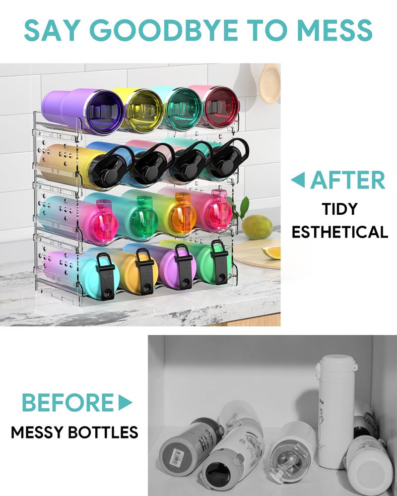 HOGARBAZARUTENSILIOS DE COCINAAreforic Organizador de botellas de agua, paquete de 4 organizadores apilables para gabinetes,