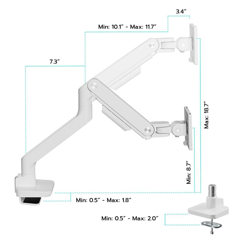 ARES WING Brazo de monitor ultraancho blanco para pantalla curva de 17 a 49 pulgadas, soporta 44