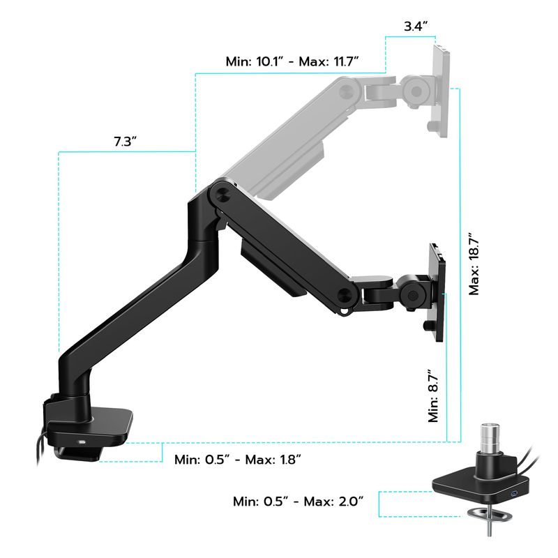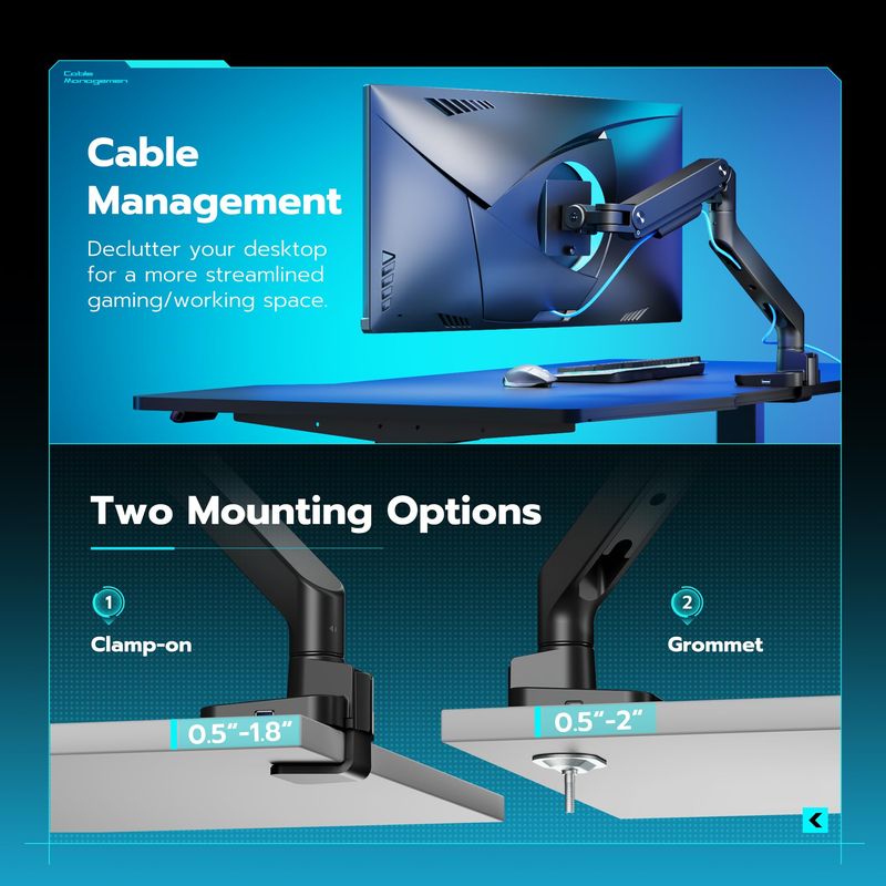 ARES WING Soporte para monitor individual con USB A/C, brazo de monitor ultraancho para pantalla de