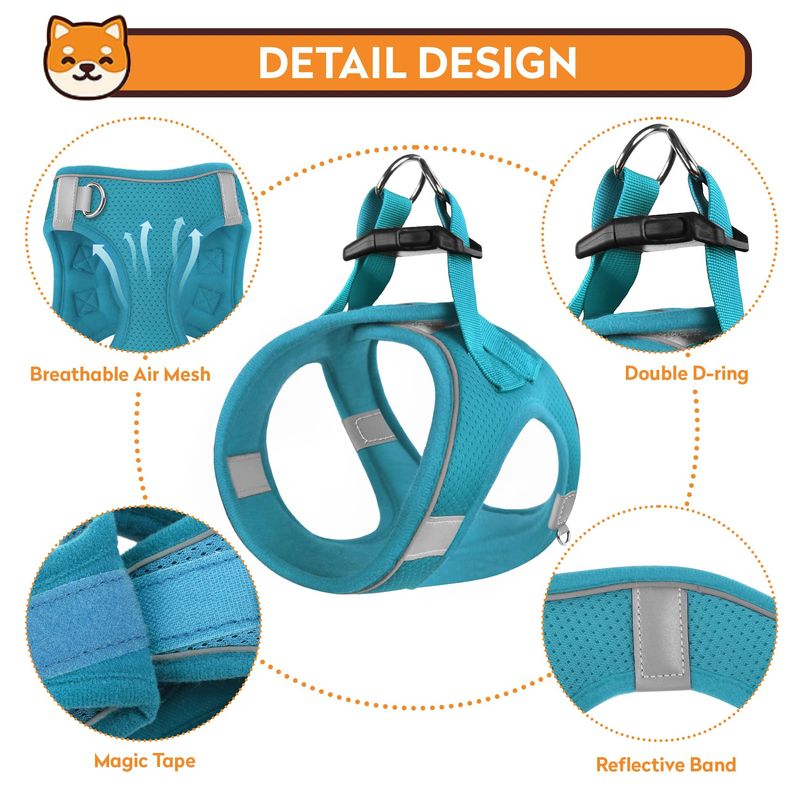 Arnés para perro con correa, arnés reflectante sin tirones para mascotas con 1 clips para correa,
