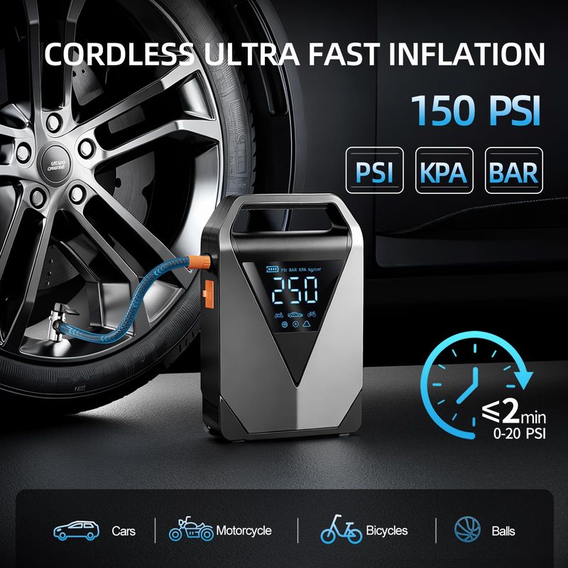 RODADOSHERRAMIENTAS PARA AUTOArrancador de coche con compresor de aire, 150PSI 4500A batería de coche (todo gasolina), refuerzo