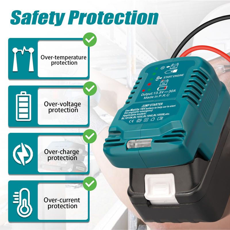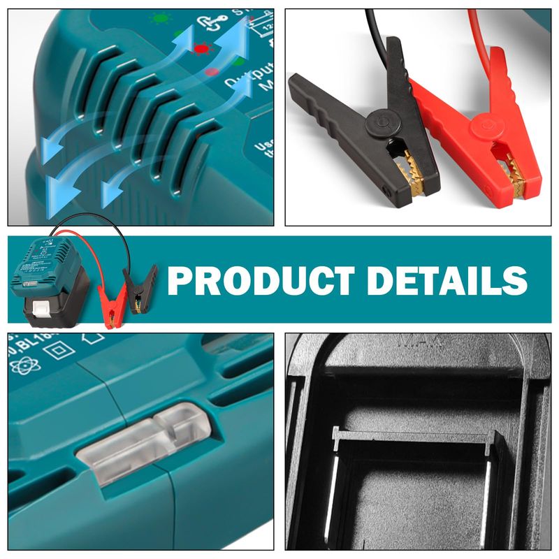 RODADOSHERRAMIENTAS PARA AUTOArrancador de coche, para Makita 18 V Li-ion batería adaptador de arranque alimentado con cables de