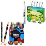 Arrtx 40 bolígrafos de pintura acrílica para pintura en rocas, 32 puntas de pincel (punta doble) y