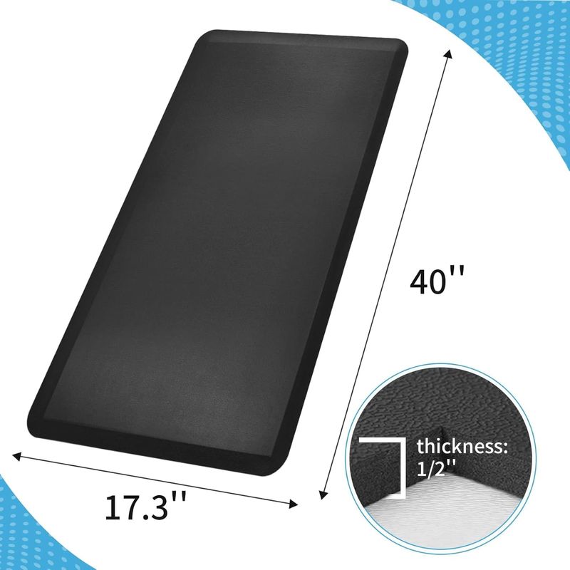 ART3D TAPETE ANTIFATIGA, TAPETE DE COCINA ACOLCHADO DE 1/2 PULGADA, COJíN CóMODO Y ANTIDESLIZANTE PARA ESCRITORIO DE PIE, OFICINA O PISO DE GARAJE (17.3 X 28 PULGADAS, NEGRO)